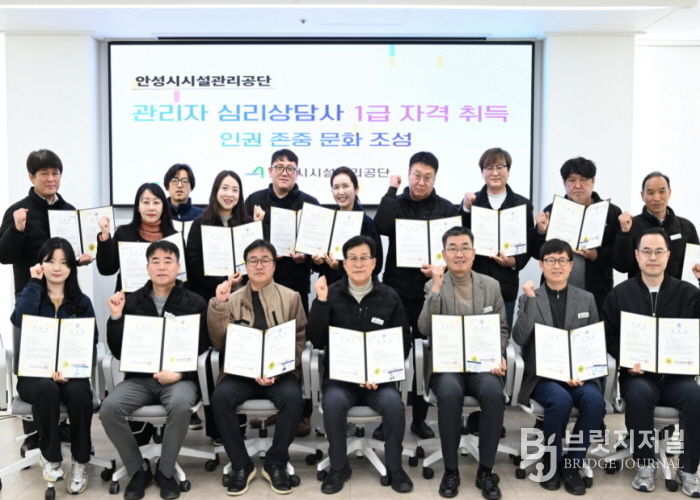 브릿지저널 김경미 기자 | 안성시시설관리공단은 조직 내 인권존중 문화 정착과 관리자 상담 역량 강화를 위해 관리자 대상 심리상담사 자격 취득 교육을 실시하고 전원이 자격을 취득했다고 밝혔다.