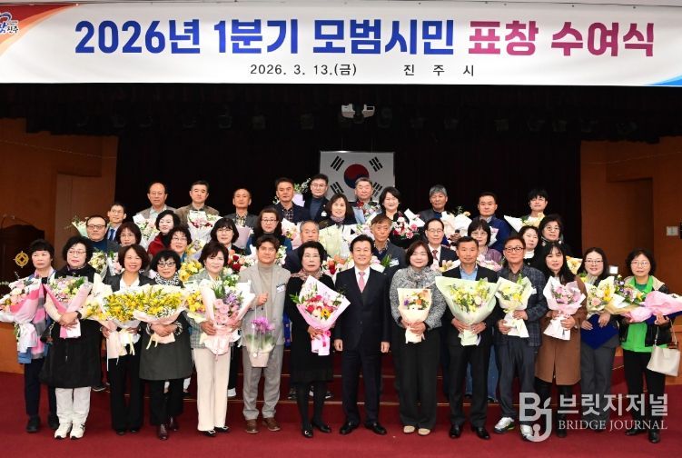 브릿지저널 김경미 기자 | 진주시는 13일 시청 시민홀에서 지역사회 발전에 기여하고 자발적인 봉사와 나눔을 실천한 시민 90명을 대상으로 ‘2026년 1분기 모범시민 표창 수여식’을 개최했다.