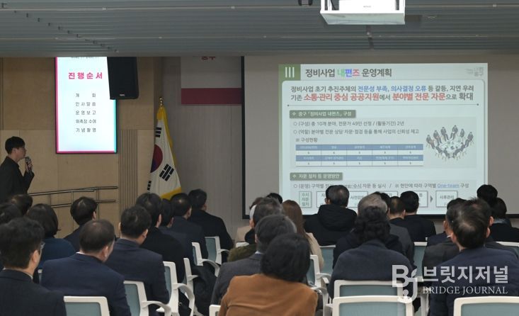 브릿지저널 김경미 기자 | 서울 중구가 정비사업을 지원해 줄 49명의 전문가 자문단을 꾸렸다. 구는 지난 12일 중구청 중구홀에서 '정비사업 내편즈' 발대식을 열고, 정비사업 전 과정에 자문과 상담을 제공해 줄 전문 자문단의 시작을 알렸다.