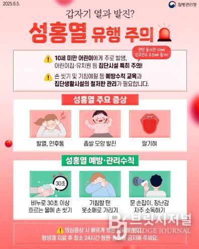 특히 성홍열은 ‘A군 베타 용혈성 연쇄상구균’에 의한 급성 발열성 질환으로, 올해 1월 기준 대구시 발생 환자가 전년(6명) 대비 9배 이상 증가한 56명을 기록하며 각별한 주의가 요구되고 있다.