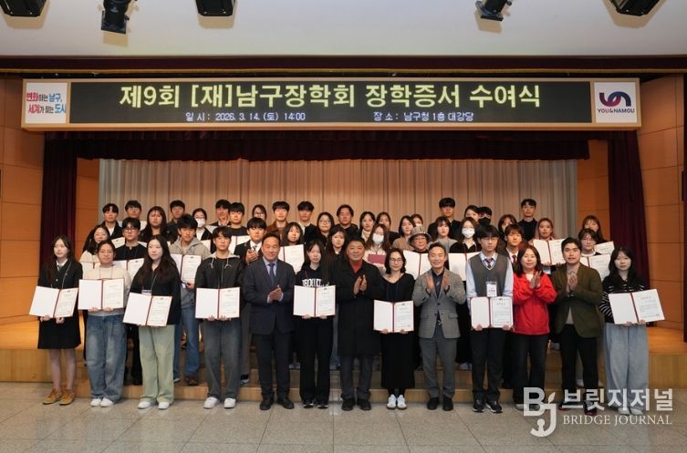 브릿지저널 윤나영 기자 | (재)부산광역시 남구장학회(이사장 김태유)는 지난 3월 14일 남구청 대강당에서 장학생과 학부모 등 80여 명이 참석한 가운데 2026년도 남구장학회 장학 증서 수여식을 개최했다.