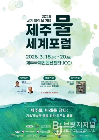 브릿지저널 정보영 기자 | 제주특별자치도와 제주개발공사는 오는 22일 유엔(UN) 세계 물의 날을 앞두고 18일부터 20일까지 제주국제컨벤션센터와 도내 일원에서 ‘2026 세계 물의 날 기념식 및 제주물 세계포럼’을 공동 개최한다.