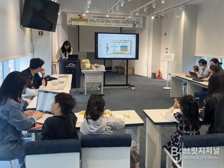 브릿지저널 김진석 기자 | 대구 수성구육아종합지원센터는 지난 13일 관내 영유아 가족을 대상으로 ‘인공지능(AI)과 함께 만드는 우리 가족 동화책 만들기’ 프로그램을 개최했다.