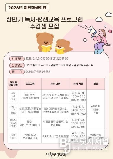 브릿지저널 김경미 기자 | 제천학생회관은 학생과 지역주민의 독서문화 확산과 평생학습 기회 제공을 위해 다양한 독서·체험 프로그램을 운영한다.