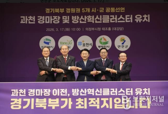 브릿지저널 김경미 기자 | 연천군은 17일 의정부시청 태조홀에서 열린 ‘경기북부(경원권) 5개 시ㆍ군 공동선언식’에 참석해 과천경마공원(렛츠런파크 서울) 및 경기도 방산혁신클러스터의 경기북부 유치를 강력히 촉구했다고 밝혔다.