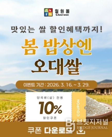 이번 기획전은 3월 29일까지 2주간 진행되며, 철원몰에 입점한 다양한 지역 농·특산물을 보다 합리적인 가격에 구매할 수 있도록 할인 혜택을 제공한다.