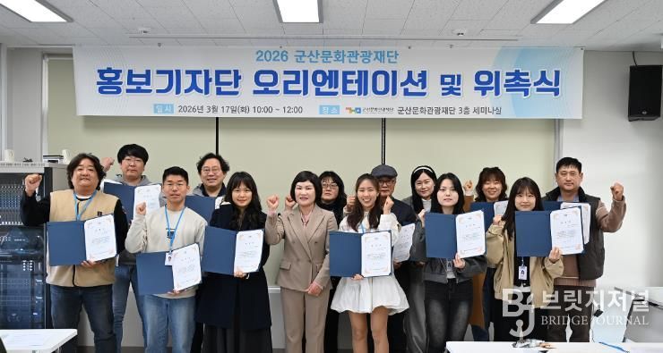 브릿지저널 윤나영 기자 | 군산문화관광재단은 17일 재단 회의실에서 ‘홍보기자단 위촉식 및 안내행사’를 개최하고 홍보기자단 활동을 본격적으로 시작한다고 밝혔다.