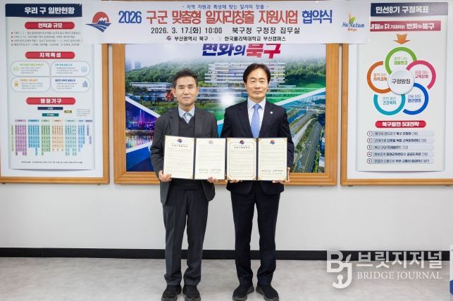브릿지저널 윤나영 기자 | 부산 북구는 부산시 주최 ‘2026년 구·군 맞춤형 일자리창출 공모사업’에 '홈 인테리어 시공전문가 양성사업'이 선정됨에 따라, 한국폴리텍Ⅶ대학 부산캠퍼스 산학협력처와 사업 추진을 위한 협약을 체결했다고 17일 밝혔다.