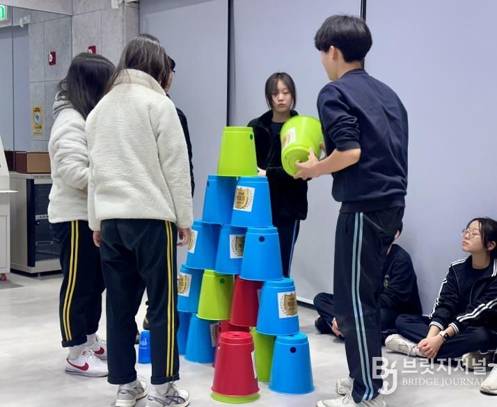 프로그램은 컵쌓기 챌린지와 A4 용지 탑쌓기 활동으로 진행됐다. 학생들은 팀원들과 아이디어를 나누고 역할을 분담하며 협동 과정을 경험했다. 또한 뉴스포츠 볼로볼과 토스볼 활동을 통해 몸을 움직이며 전략적 소통과 팀워크를 익혔다.