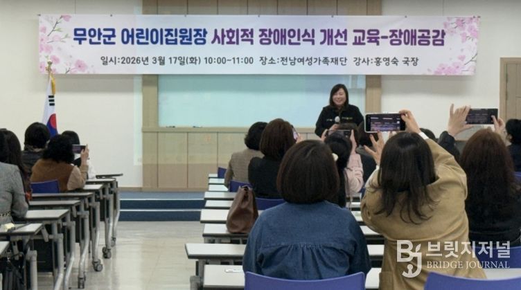 브릿지저널 김경미 기자 | 무안군어린이집연합회(회장 신경옥)는 지난 17일 관내 어린이집 원장을 대상으로 장애인 인식개선 교육과 보육 현안 공유를 위한 회의를 개최했다.