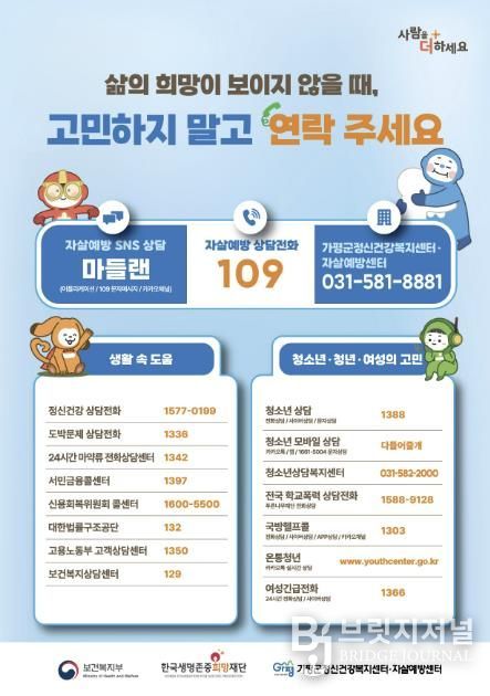 브릿지저널 김경미 기자 | 가평군정신건강복지센터와 자살예방센터가 봄철 자살 위험 증가에 대응해 집중 예방 활동에 나섰다.
