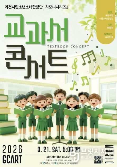 브릿지저널 김경미 기자 | 과천시립소년소녀합창단의 ‘하모니시리즈1 '교과서 콘서트'’가 오는 21일 오후 5시, 과천시민회관 대극장에서 열린다.