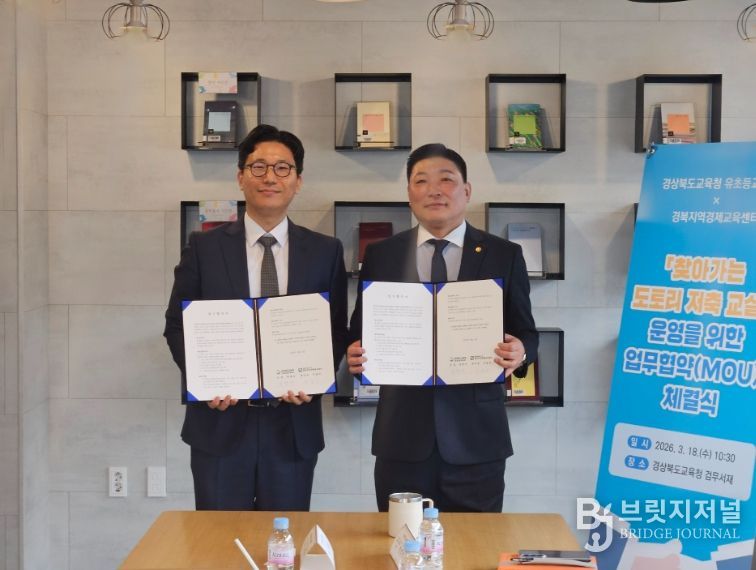 브릿지저널 정보영 기자 | 경북교육청은 18일 본청 본관동 검무서재에서 경북지역경제교육센터와 취약지역 영유아를 위한 찾아가는 경제교육 프로그램의 안정적 운영을 위한 업무협약(MOU)을 체결하고, 농어촌 유치원․어린이집을 대상으로 한 체험형 경제교육 지원에 본격적으로 나선다고 밝혔다.