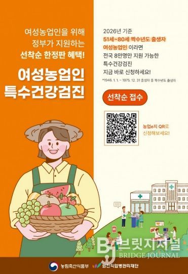 브릿지저널 정보영 기자 | 포항시가 여성농업인의 건강권을 보호하고 농작업으로 발생하기 쉬운 질환을 예방하기 위해 특수건강검진비를 지원한다.