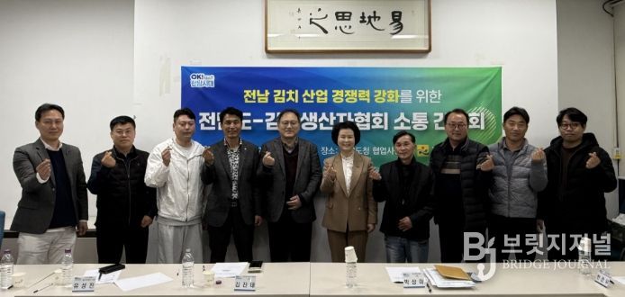 브릿지저널 김경미 기자 | 전라남도는 18일 도청에서 (사)전남김치생산자협회와 간담회를 개최하고, 전남광주 행정통합에 대비해 김치 산업의 경쟁력 강화와 발전을 위한 현장 의견을 수렴했다.