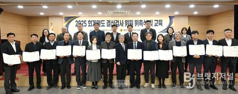 브릿지저널 정보영 기자 | 제주특별자치도의회는 18일 의원회관 대회의실에서 2025회계연도 결산검사위원 위촉식을 개최하고, 15명의 결산검사 위원에게 위촉장을 수여했다고 밝혔다.