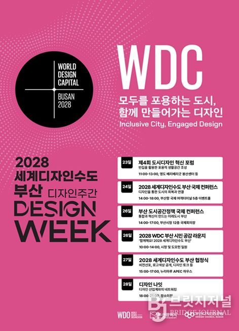브릿지저널 윤나영 기자 | 부산시는 오는 3월 23일부터 29일까지 일주일간 '2028 세계디자인수도(WDC) 부산 디자인 주간(Week)'을 운영한다고 밝혔다.