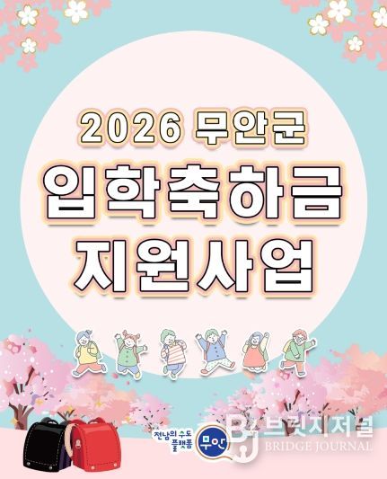 브릿지저널 김경미 기자 | 무안군은 이달 19일부터 초·중·고등학교 및 대학 신입생을 대상으로 입학축하금을 지원하고 있다고 밝혔다.