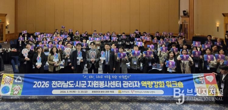 브릿지저널 김경미 기자 | 전라남도는 자원봉사센터 관리자의 전문성 향상과 도·시군 간 협력 강화를 위해 2026년 ‘도·시군 자원봉사센터 관리자 역량강화 워크숍’을 20일까지 이틀간 영암 호텔현대 바이 라한에서 개최했다고 밝혔다.