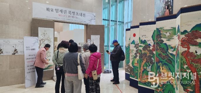 광양매화문화관 기획전시실에서는 광양 출신 민화 작가 엄재권 화백의 특별전이 열리고 있다. 엄 화백은 한중 정상회담 당시 중국 국가주석에게 전달된 민화 ‘기린도’를 제작한 작가다.