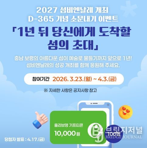 브릿지저널 정보영 기자 | 섬비엔날레조직위원회는 3월 23일부터 오는 4월 3일까지 약 2주간 섬비엔날레 개최 D-365일을 맞아 대국민 온라인 참여 이벤트를 진행한다고 밝혔다.