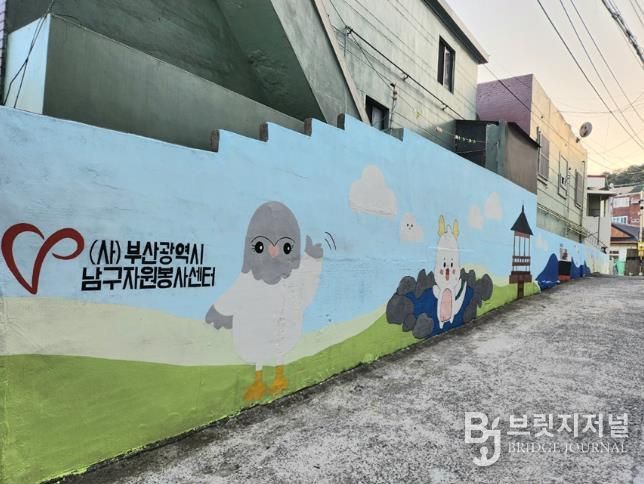 브릿지저널 윤나영 기자 | (사)부산남구자원봉사센터와 부경대 벽화봉사단 ‘절영회’는 지난 3월 22일 남구 신선로337번길 17-20 일원 담벼락에서 ‘붓끝으로 그리는 세상’ 사업을 진행하며 지역의 오래된 담벼락 약 30미터 구간에 생동감 있는 벽화를 조성했다고 밝혔다.