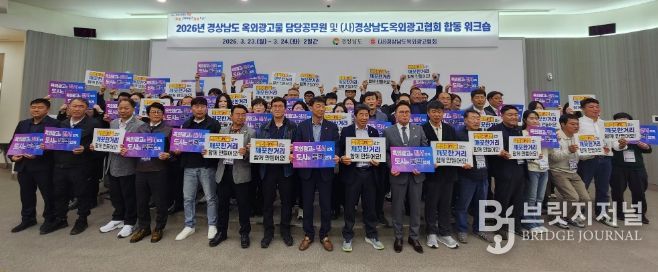 브릿지저널 김경미 기자 | 경상남도는 옥외광고 행정 역량 강화를 위해 3월 23일부터 24일까지 사천 KB인재니움에서 ‘2026년 옥외광고물 담당 공무원 및 유관기관 합동 워크숍’을 개최했다고 밝혔다.