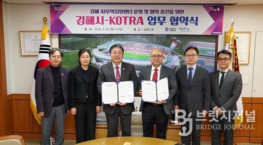 브릿지저널 김경미 기자 | 김해시는 24일 김해시청에서 대한무역투자진흥공사와 김해AI무역지원센터 운영을 위한 상호협력 업무협약을 체결했다.