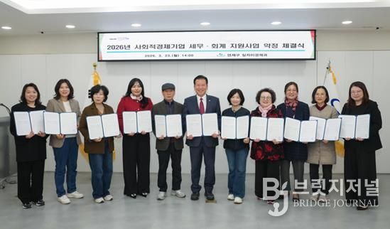 구는 지난 3월 23일 구청 소회의실에서 ‘2026년 연제구 사회적경제기업 세무·회계 지원사업 약정 체결식’을 개최하고, 선정된 10개 사회적경제기업과 지원 약정을 체결했다.