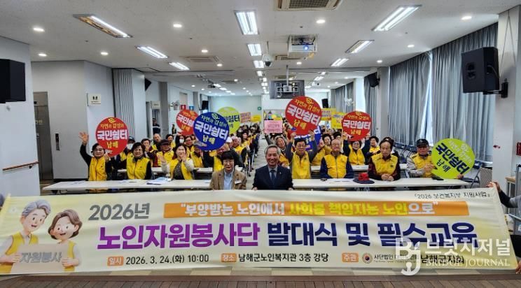 브릿지저널 김경미 기자 | (사)대한노인회 남해군지회는 지난 24일 남해군 노인복지관 3층 대강당에서 소속 10개 단체 200여 명의 자원봉사 단원이 참석한 가운데 ‘2026년도 남해군 노인자원봉사단 발대식 및 노인자원봉사자 교육’을 성황리에 개최했다.
