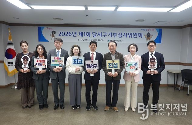 브릿지저널 김진석 기자 | 대구 달서구는 지난 23일'2026년 제1회 달서구 기부심사위원회'를 개최하고, 기부자 명예의 전당 등재자 선정 등 주요 안건을 심의했다.