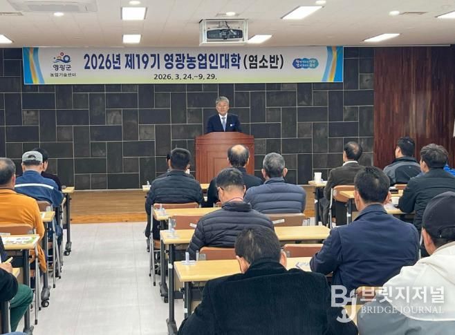 브릿지저널 김경미 기자 | 영광군은 3월 24일 농업기술센터에서 ‘2026년 제19기 영광농업인대학(염소반) 입학식’을 개최하고 본격적인 교육과정 운영에 들어갔다.