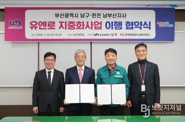 브릿지저널 윤나영 기자 | 부산 남구는 '유엔로 지중화사업'과 관련해 지난 3월 25일 오전 10시 30분 남구청에서 한국전력공사 남부산지사와 업무협약을 체결했다고 밝혔다.