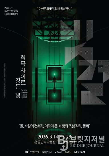 브릿지저널 정보영 기자 | (재)아산문화재단이 구정아트센터에서 개최 중인 2026 우수전시 초청 《침묵 사이로 깃든 빛》이 공간과 예술이 조화를 이룬 전시로 주목받고 있다.