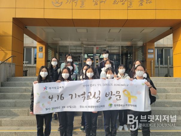 브릿지저널 김경미 기자 | 안양 범계중학교(교장 박경숙) 학생자치회 학생 20여 명은 3월 27일에 세월호 참사의 교훈을 되새기고 생명 존중 문화를 확산하기 위해 경기도교육청 4.16생명안전교육원(안산시 단원구 소재)을 방문했다. 이번 방문은 매년 범계중학교에서 진행되는 ‘국민 안전의 날’ 행사 진행에 앞서 학생자치회가 주도적으로 기획했다. 12년이라는 시간이 지나 학생들이 ‘세월호 사건’을 잘 체감하지 못하는 것을 인식하고 이를 먼저 느끼고 알리고자 한 것이다.