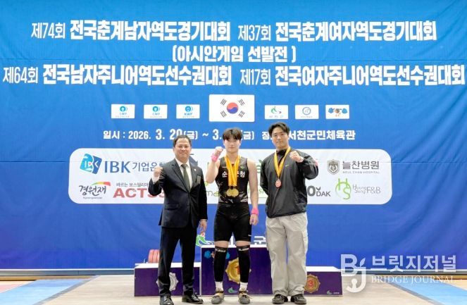 남자 75kg급(주니어)에 출전한 장서진 선수는 인상, 용상, 합계 전 부문에서 1위를 기록하며 대회 3관왕에 오르는 압도적인 성과를 거뒀다. 안정적인 경기 운영과 뛰어난 집중력을 바탕으로 차세대 역도 유망주로서의 가능성을 확실히 입증했다.