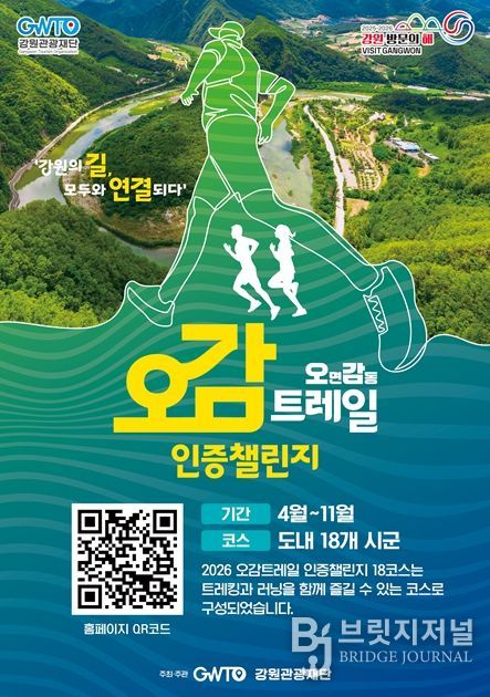 브릿지저널 윤나영 기자 | 강원관광재단은 지난해 좋은 성과를 거둔‘오감트레킹’사업을 더욱 확장하여, 강원 트레일 관광 활성화를 위한‘2026년 오감트레일’사업으로 본격 추진한다고 밝혔다.