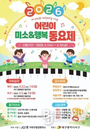 브릿지저널 김진석 기자 | JCI서대구청년회의소는 대구 서구청의 후원으로 ‘어린이 미소&행복 동요제’를 개최한다.