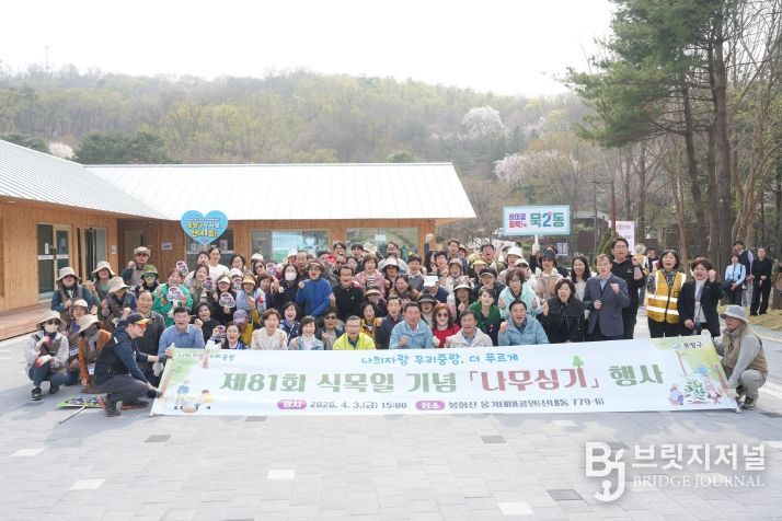 브릿지저널 김경미 기자 | 중랑구(구청장 류경기)가 4월 3일 제81회 식목일을 맞아 봉화산 옹기문화마당에서 나무심기 행사를 진행했다.