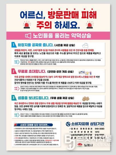 브릿지저널 윤나영 기자 | 김제시가 최근 고령층을 대상으로 한 방문판매 홍보관(일명 ‘떴다방’) 영업이 확산됨에 따라 소비자 피해 예방을 위한 시민들의 각별한 주의를 당부했다.