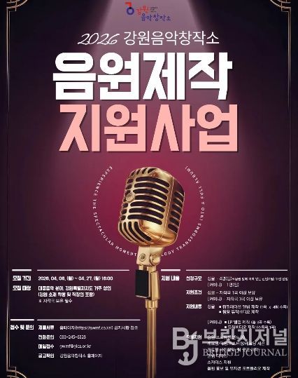 브릿지저널 윤나영 기자 | 강원음악창작소가 오는 27일까지 도내 역량 있는 뮤지션을 발굴하기 위해 ‘2026년 음원제작 지원사업’의 참여자를 모집한다.