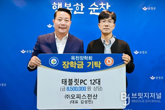 브릿지저널 윤나영 기자 | 순창군은 7일 ㈜오피스전산(대표 김성민)이 지역 학생들의 학습환경 개선을 위해 순창군옥천장학회(이사장 최영일 순창군수)에 태블릿PC 12대(약 850만 원 상당)를 기탁했다고 밝혔다.