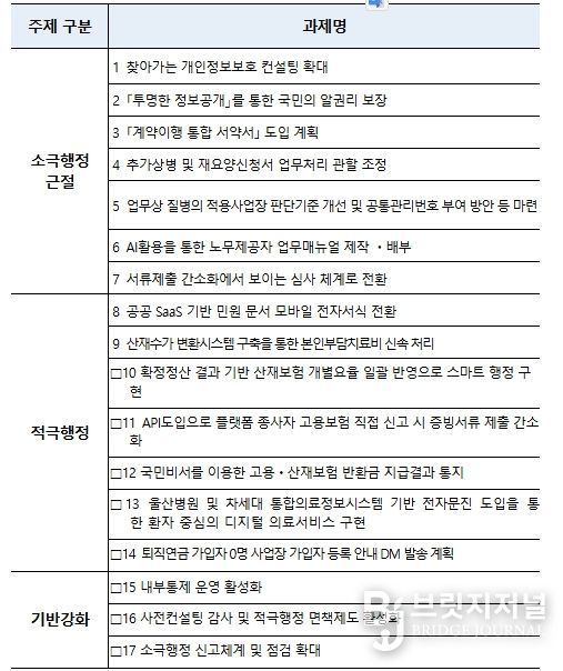 브릿지저널 정보영 기자 | 근로복지공단(이사장 박종길)은'2026년 적극행정 실천과제'17건을 선정하고, 국민 불편 해소를 위한 현장 중심의 업무처리 절차 개선을 본격 추진한다고 밝혔다.