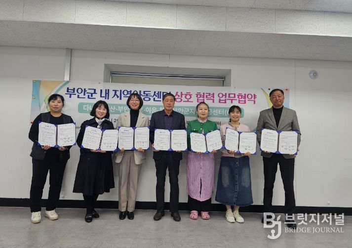 브릿지저널 윤나영 기자 | 부안지역 6개 지역아동센터는 지난 6일 청소년 봉사활동 활성화 및 복지 네트워크 강화를 위한 업무협약(MOU)을 체결하고 지역사회와 함께 호흡하는 아동·청소년 복지의 새로운 모델을 제시하기로 했다고 밝혔다.