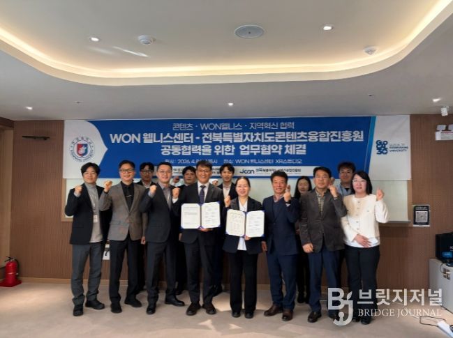 브릿지저널 윤나영 기자 | 전북특별자치도 콘텐츠융합진흥원과 원광대학교 WON 웰니스센터(센터장 최미숙)은 콘텐츠와 웰니스 분야 연계를 위한 협력 방안을 마련하고, 상호 협력 기반 구축을 위한 논의를 진행하고 있다고 밝혔다.