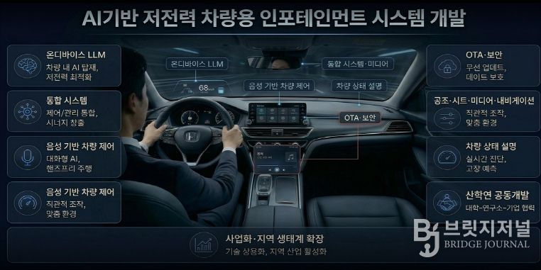 이번 사업은 이러한 산업변화에 대응하고자 ▲온디바이스(On-device) AI 기반 음성·제스처 인식 ▲저전력 최적화 및 실시간 처리 ▲무선 업데이트(OTA) 및 차량 보안 ▲경량 대규모언어모델(LLM) 기반 차량 제어 및 사용자 인터페이스 등을 통합한 차세대 차량 인포테인먼트 플랫폼 개발을 추진한다.