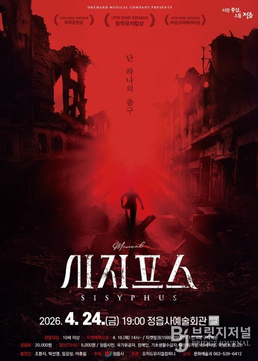 브릿지저널 윤나영 기자 | 정읍시가 시민들에게 수준 높은 문화 향유 기회를 제공하기 위해, 오는 24일 오후 7시 정읍사예술회관에서 창작 음악극(뮤지컬) ‘시지프스’를 무대에 올린다.