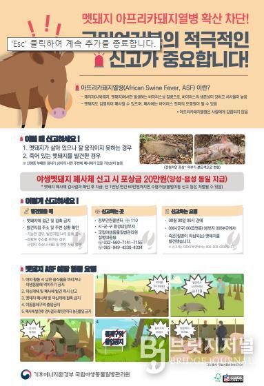 브릿지저널 윤나영 기자 | 양양군은 수확기 농작물 피해 예방과 아프리카돼지열병(ASF) 확산 차단을 위해 오는 4월 13일부터 ‘2026년 유해야생동물 피해방지단’을 본격 가동한다고 밝혔다.