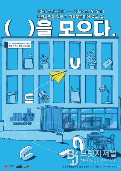 브릿지저널 윤나영 기자 | 전주시는 오는 17일부터 19일까지 3일간 남부시장 내 복합문화공간 ‘문화공판장 작당’에서 2026년 상반기 청년 기획자 협업 프로그램인 ‘문화공판장 작당×기록문구페어 쓱쓱-씀: (취향)을 모으다’가 펼쳐진다고 10일 밝혔다.