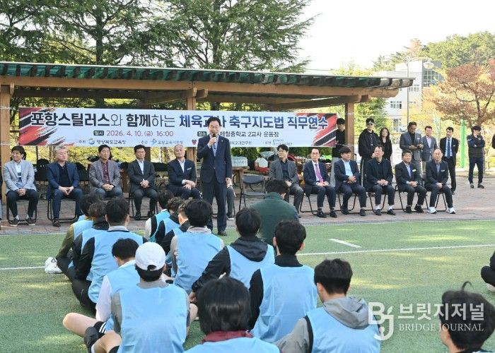 브릿지저널 정보영 기자 | 경북교육청이 주최하고 포항교육지원청과 포항스틸러스, 포항체육교과연구회가 주관하는 ‘포항스틸러스와 함께하는 체육 교사 축구 지도법 직무연수’가 10일 포항제철중학교 운동장에서 개최했다고 밝혔다.